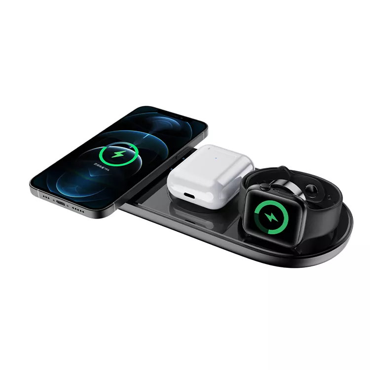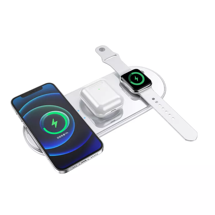 Ta ploščati brezžični polnilnik 3 v 1 podjetja SYNST (Kitajska) je posebej zasnovan za način postopnega napajanja. Ko ponoči spite, postavite napravo na brezžični polnilnik, da se napolni, samodejno preklopi v stanje tekočega napajanja. Ta način lahko zagotovi, da je naprava hkrati popolnoma napolnjena, učinkovito zaščiti oskrbo z električno energijo in prepreči poškodbe baterije zaradi prekomernega polnjenja. Kar zadeva indukcijo polnjenja, se ta brezžični polnilnik prav tako dobro obnese. Ima razdaljo zaznavanja do 6 mm in tudi če ima vaša naprava zaščitno ovojnico določene debeline, lahko zlahka zazna in začne polniti. Hkrati ima hitro indukcijsko hitrost polnjenja in stabilno frekvenco, kar lahko zagotovi učinkovit in stabilen postopek polnjenja. Ne glede na to, ali polnite med uporabo telefona ali druge naprave, to ne bo moteno, kar vam zagotavlja gladko izkušnjo polnjenja.